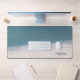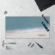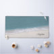 This desk mat offers a beach themed design. The background is a beautiful photo of ocean water and sand. Trendy script text allows you to personalise with your name.