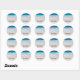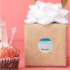 Tropical, blue ocean water and smooth, sandy beach image on a round sticker with custom text which is "thank you".