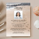 A beautiful celebration of life invitation for someone who loved the ocean and walking along the beach. The front features a background photo of a peaceful beach with footprints in the sand. (You can replace the background photo with one of your own) Easily add a photo of your loved one and details of your celebration. The backside offers space for a photo and poem or scripture (or delete). The template is very easy to use and change - create an invitation that’s unique and beautiful and will be cherished forever.