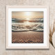 This stunning beach scene ocean sunset wall art image is a masterpiece of neutral colour and tranquillity. With soft teal and beige colours the image captures the serene beauty of a beach sunset and ocean waves and sea foam. The calm ocean waves gently wash up on the sandy shore as the sun sets behind the horizon, casting a warm glow over the scene. The use of neutral colours gives the image a dreamy quality, evoking a sense of peace and relaxation. This wall art is perfect for anyone who loves the beach and wants to bring a piece of its boho style beauty into their home or office. Whether hung in a living room or bedroom, this image is sure to inspire a sense of calm and serenity in anyone who gazes upon it. Kindly note: the frame in cover photo does not come with purchase. You will need to purchase one separately or add one to this purchase. Thank you!