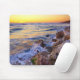 Mouse pad shown with a photo print of a beautiful rocky beach sunset scene. Customise this item or buy as is. Stock Image
