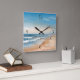 Romantic ocean scene painting with couple walking along the shore as waves break on the sand can grace your beach house or any room where you like to think of ocean vacations and walks on the beach.