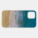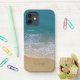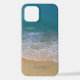 Ocean colour image of beach with almond sand, blue water and waves breaking on the shore. Personalise with your name, initials or message in blue font lettering.