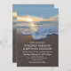 Romantic destination wedding invitations featuring a coastal shoreline, a beautiful sunset, and a modern wedding template.