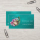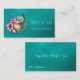 Hawaiian style coconut with straw, tropical leaves and hibiscus flowers composition on a water like blue teal background making a retro bold colourful beach bar business card / happy hour and social media advertising card. ---- Fill in your details on front and back side!