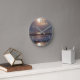 Gorgeous sunset at the beach with waves coming in, and a Surfer waiting for a wave, is on this Wall Clock.