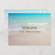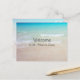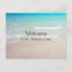 Welcome to class postcard from teacher. Scenic ocean and beach image with customisable text on front and back. Include teacher's name and personal message to individual students.