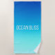 VIVIDLUXE Modern Casual Style. Wrap yourself in the calming hues of the sea. This large, absorbent Beach Towel features our Ocean Bliss design—a smooth gradient from deep blue to seafoam green that evokes the tranquillity of ocean waves. The bold, modern typography completes the look, making it your perfect companion for a serene day at the shore or by the pool.