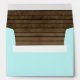 Blue envelope with return address and barn wood design on inside to compliment our rustic lantern wedding invitation set. Personalise return address on back flap.
