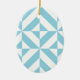 Ocean Blue Geometric Deco Cube Pattern Ceramic Ornament