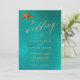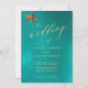 Elegant minimalist starfish under the sea underwater aqua teal blue summer beach destination wedding invitation with modern stylish the wedding of calligraphy script.