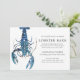 A set of lobster boil birthday invitations for your next seafood related barbecue or party. These invitations feature simple charcoal black text, along with a unique watercolor style blue lobster illustration centred towards the side. On the reverse side of the invitation is a striped deep Ocean Blue colour. All elements of this invitation are adjustable by using the customise function.