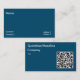 Business card in Ocean blue solid colour background and white fonts .Simple and trendy design by Alma Wad .Personalise both sides now . Also add your own URL to generate your own QR code .It comes 100 per pack .