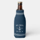 Upgrade your boat beverages with these awesome personalised bottle coolers in bright navy blue. Design features your boat name, ship's registry, and year established in white lettering, accented with an anchor illustration and rope stripe detailing at the top and bottom.