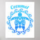Ocean Blue Tribal Turtle Cozumel Poster