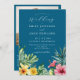 Ocean Blue Tropical Flowers Photo QR Code Wedding Invitation