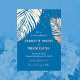Artistic, tropical palms ocean blue beach wedding design with choices gold,silver and rose gold foil.
