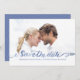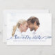 This whimsical and stylish save the date features watercolor hand-lettering script in a pretty blue colour. Personalise with your photo and details.