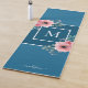 Ocean blue personalised monogram yoga mat featuring minimalist typography and pretty pink watercolour flowers. Simple. sweet, elegant and chic. Customise with initial and name. Includes front and back. Change background colours to suit your need and preference. Great gift ideas for her.