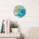 Ocean Blue Waves and Sandy Brown Fluid Art Large Clock