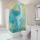 Ocean Blue Waves and Sandy Brown Fluid Art Shower Curtain