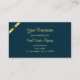 YOUR FAVORITE - Make a lasting impression with this elegant and luxury business card design featuring shimmery golden decor borders and oval frame with your (employees-) photo. On the front matching monogram pattern on a ocean blue background and the back is dark ocean blue.