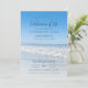 Simple Elegant Celebration Of Life Memorial Invitation with an ocean beach background.
