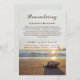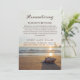 Beach-themed death anniversary invitation to celebrate and honour the memory of your loved one. Remembering is written across the ocean-themed invitation in an elegant script. Add the invitation wording, name of your loved one, and details of the celebration in elegant brown fonts against a photo of a conch lying on a beach.