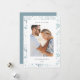 Chic coastal style holiday card adds nautical flair to your Christmas greetings. Perfect for sharing a vacation photo, or for families who live in coastal, tropical, warm weather or island locales, this elegant design features your favourite vertical photo with a border of ocean coral in shades of blue and dusty teal. Add your custom holiday message (shown with "seas and greetings"), family signature and the year.