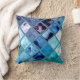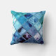 This American Mojo pillow has a 100% cotton washable zipper case and has a design of water, glass, mosaic, deep ocean blues, tropic island shadows, and subtle hints of doves. Stunning aquamarine, turquoise, navy and purple digital design.