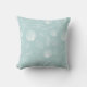 This throw pillow features a repeating pattern of white hand-drawn sea shells, starfish, sand dollars and seaweed over a light, mint green background. Perfect accent for a seaside retreat.