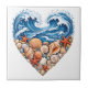 Ocean Heart Waves Seashells – Coastal Beach Art Ceramic Tile