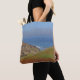 Add a hint of the coast to your grocery and shopping trips with this tote bag featuring a landscape photo that captures the rolling hills and sand dunes with the rolling waves and blue horizon in the distance. The close dunes are covered with green coastal plants. The ocean displays beautiful shades of blue.