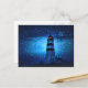 An avocative image with nautical and seascape theme. A lighthouse a stormy night with dark clouds and rain. A light can be seen in the lighthouse tower. A dark blue image covered with drops, raindrops or ocean spray
