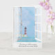 Open window with red and white striped lighthouse and sailboat for general sympathy.
