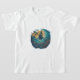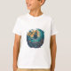 The t-shirt design features the text "Ocean Odyssey" in a playful, handwritten font with a rainbow of colours. The colours are bright and cheerful, creating a fun and energetic feel. The layout is simple and eye-catching, with the text centred on the shirt.
