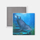 This vibrant underwater scene showcases a graceful dolphin gliding through crystal-clear blue waters, bathed in sunlight streaming from above. Surrounded by delicate bubbles, swaying sea grasses, and colorful coral, the dolphin appears mid-motion, its smooth body and gentle expression evoking a sense of intelligence and playfulness. A starfish rests on the ocean floor below, adding detail to the tranquil seascape.