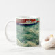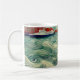 This coffee mug features beautiful artwork of a seagull flying over the ocean waves with a ship in the background.