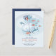 Pretty watercolor graphics in shades of baby blue and coral feature an ocean sea life scene of a whale, fish and balloons. Perfect for the arrival of a baby boy.