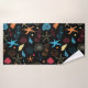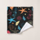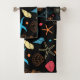 Add some ocean life to your bathroom decor with a towel set. Seashells, Starfish & Seahorses on a black background.