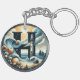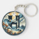 This keychain features an AI generated image of a stylised Monogram capital letter H outlined in black, incorporating an quaint old lighthouse, clouds, waves and seagulls into its design in an abstract look. Seashells and sea glass are seen on the beach. Ocean waves roll onto roll in and splash up against the base of the letter H. A black Sailboat is sailing by in the background with beautiful clouds in the sky and the sun above in the top centre of the image. The scene is completed by towering cumulus clouds in the distance. The scene is rendered in an oil paint and impasto style. Add text using Zazzle's many different font styles and colours to customise the design to your preference, or leave blank if you prefer. Zazzle also has many backgrounds that you may choose from, as well as icons that you can add to make the image your own. Have fun making it just the way you like! If you need any help customising this design, please don't hesitate to contact me, and I will be more than happy to assist you. You may contact me at KarenCoffelt@wolfmoonartanddesign.com or through Zazzle by clicking on the Chat button (please be aware that I am not available 24/7 to chat, but I will get back you ASAP). Thanks for looking!