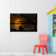 Featuring a breath taking view of a Enchanting Island Oasis With Majestic Ocean View.You can see the silhouette of some people around a fire and the ocean reflection of the beautiful orange sun.this on this is a beautiful photo on this poster