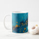Immerse yourself in tranquil artistry with the "Ocean Splash" mug from our Wabisabi Collection. This striking ceramic piece features a mesmerising turquoise backdrop adorned with organic gold splatters and delicate line work that mimics the fluid beauty of ocean currents.