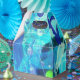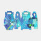 Multiple shades of blue, green, blue violet and white in varying opacities are layered together to make an eye catching abstract print.
