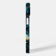 An iPhone 14 Case with an elegant blue pattern with starfish, representing the ocean.