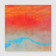 An abstract design of an ocean sunset with bold colours in red, orange, cyan, blue, and beige.