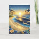 Happy Birthday card. Ai depiction of an ocean sunset with pretty blue waves, a sandy beach, palm trees and flowers done in a paper quilling 3D effect.