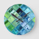 Ocean Teal Glass Mosaic Tile Art Round Clock