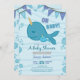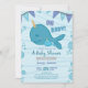 party like a narwhal! Celebrate your little one's birthday with our Adorable Narwhal Party Invitation. This cute unicorn of the sea narwhal baby shower invitations features a narwhal and her little baby narwhal swimming on a blue ocean foam. This summer pool party invitations is perfect for your narwhal theme party, ocean theme party, nautical baby shower invitations, sea unicorn themed baby shower.