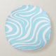 Ocean Vibes Throw Round Pillow. Dive into coastal charm with this blue and white wavy pattern round throw pillow. Inspired by ocean vibes, its flowing watercolor design blends soft whites with light blue, mimicking rolling waves. Crafted from durable, a plush polyester fill for lasting comfort and support. Perfect for a sofa, chair, or bed, it adds a breezy, seaside touch to any space. The subtle, abstract waves evoke a sense of calm and relaxation, ideal for ocean lovers. Bring the serenity of the sea home with this stylish, wave-inspired accent.